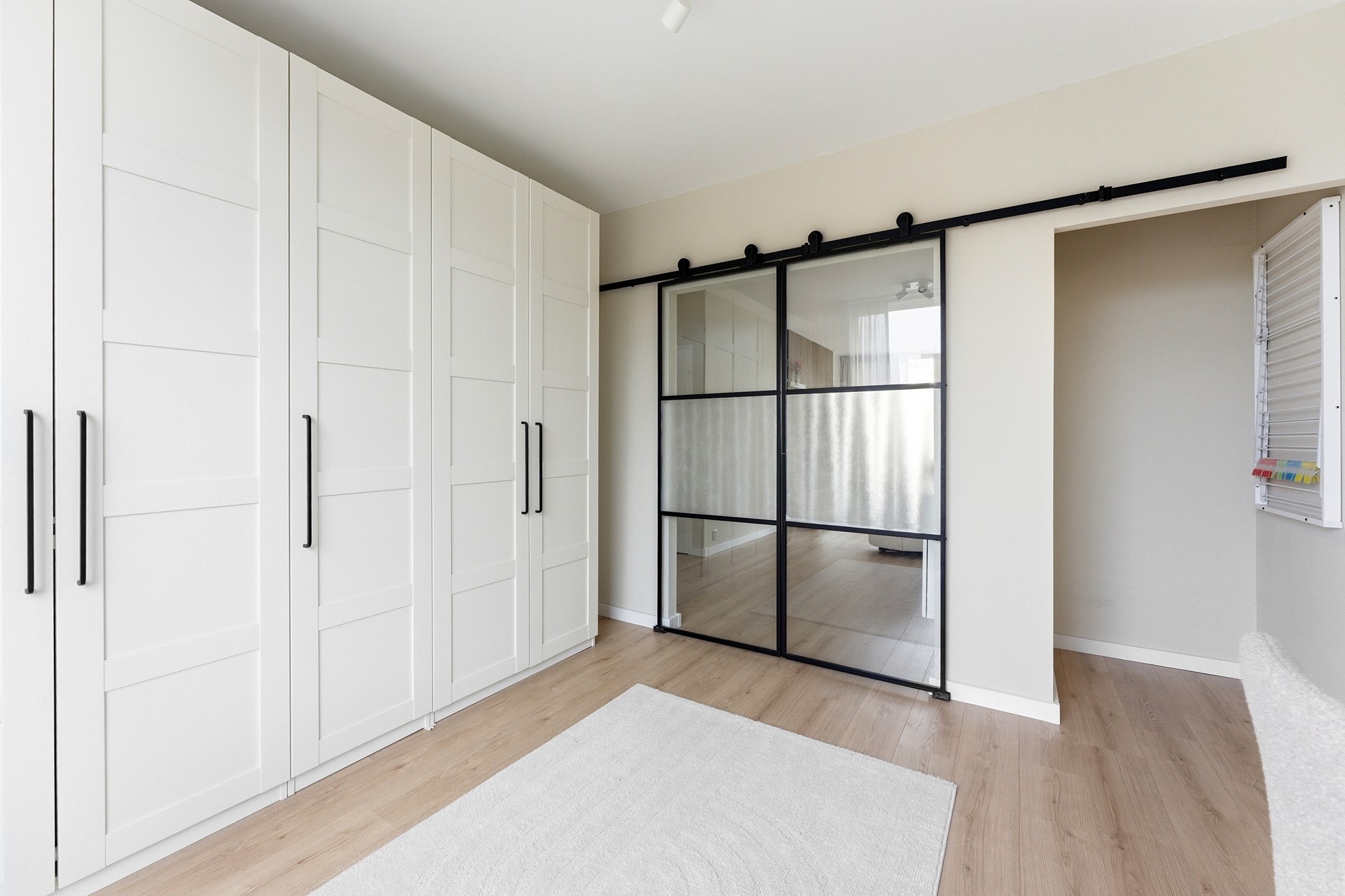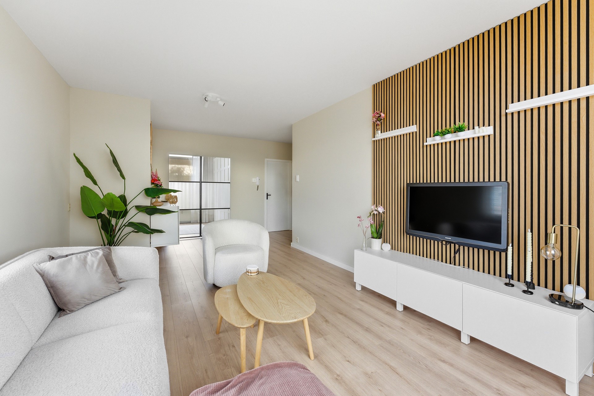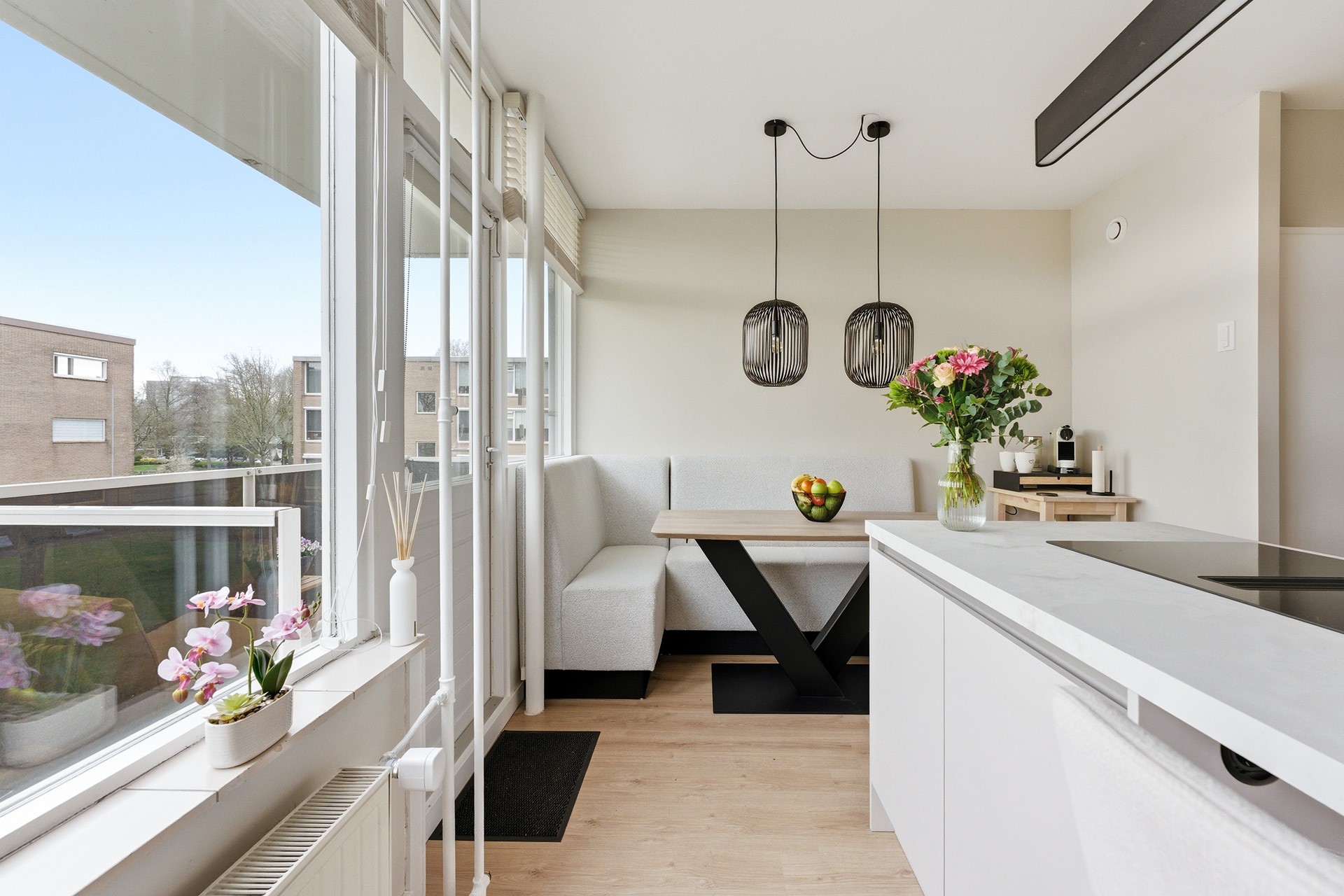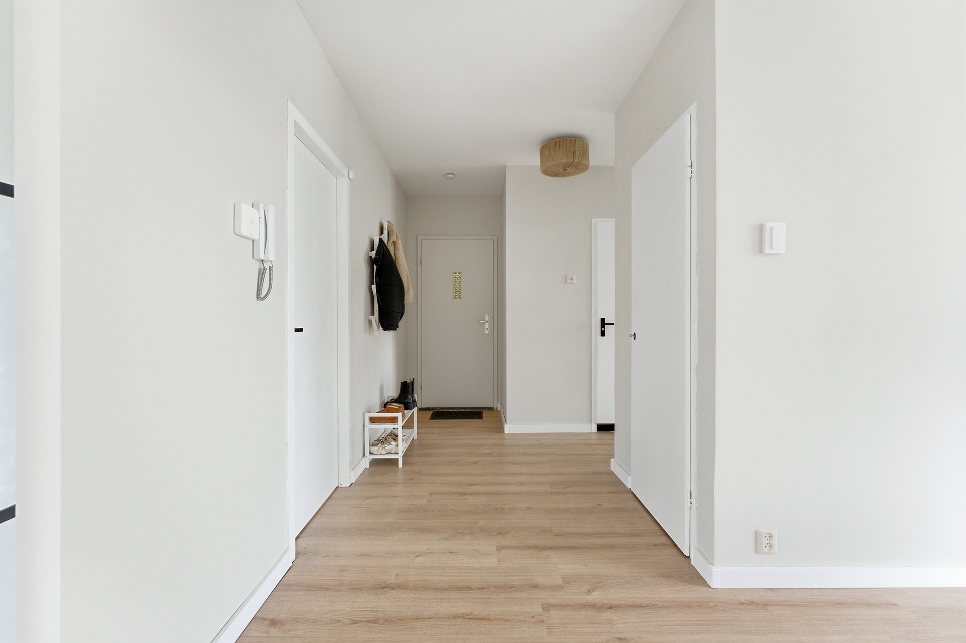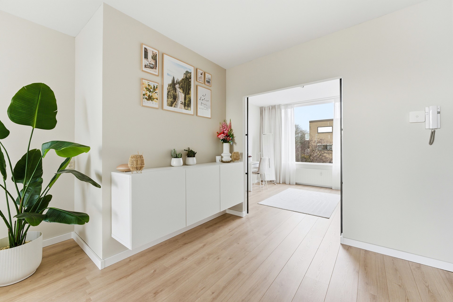 Entree van het appartement. Mooie grote ruimte met een open verbinding naar de woonkamer en toegang tot de beide slaapkamers, de badkamer, het toilet en de keuken. Prachtige woonkeuken welke in 2024 geheel nieuw is geplaatst, de keuken is voorzien van een inbouw vaatwasser, kookplaat met geïntegreerde afzuigkap, stoomoven, koelkast, vriezer en Quooker. In de keuken is een op maat gemaakte tafel en hoekbank aanwezig welke achterblijft. De badkamer is voorzien van een ruime douche en wastafelmeubel. De ruime woonkamer is voorzien van een airco die zowel voor verkoeling zorgt in de zomer als voor verwarming in de winter.