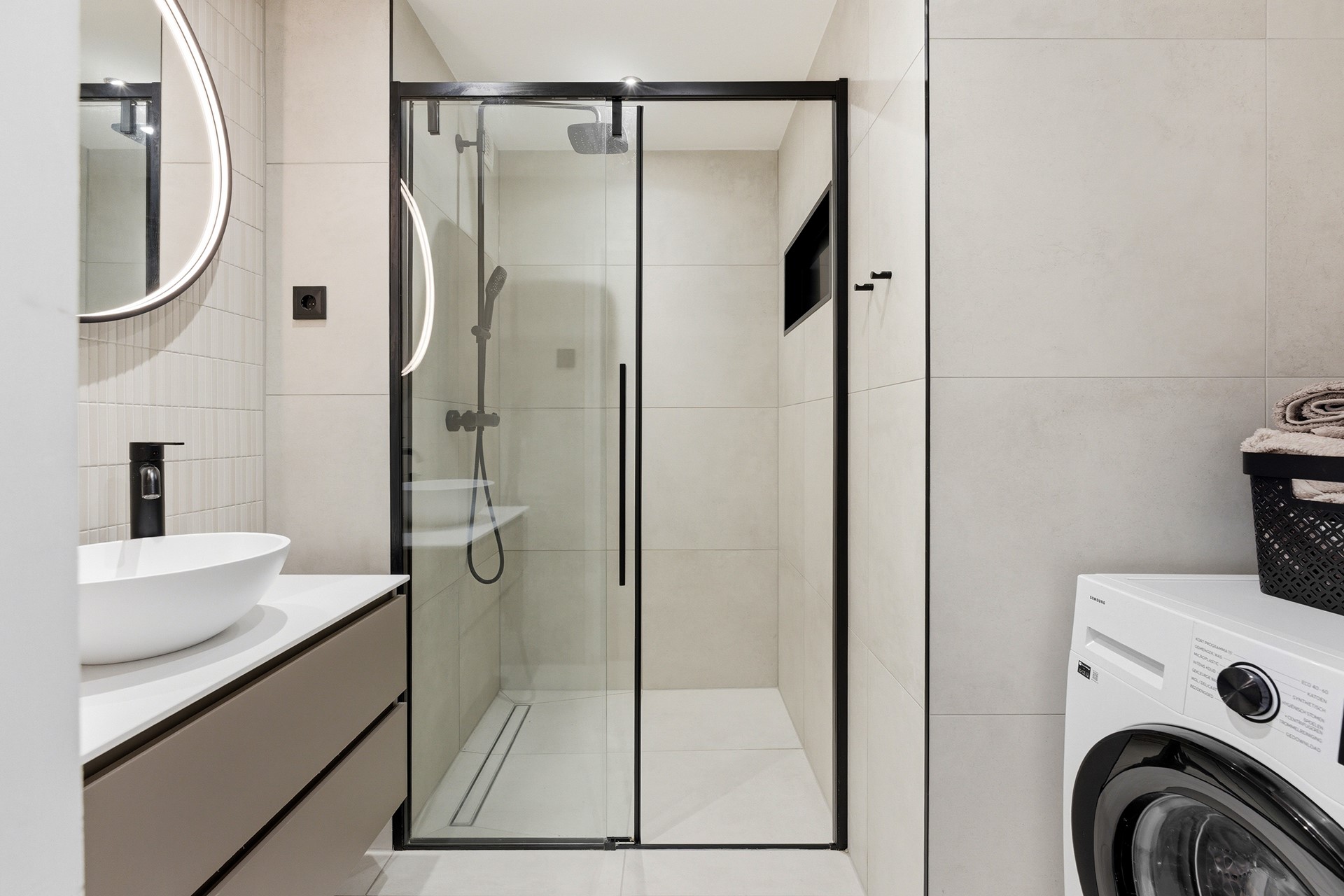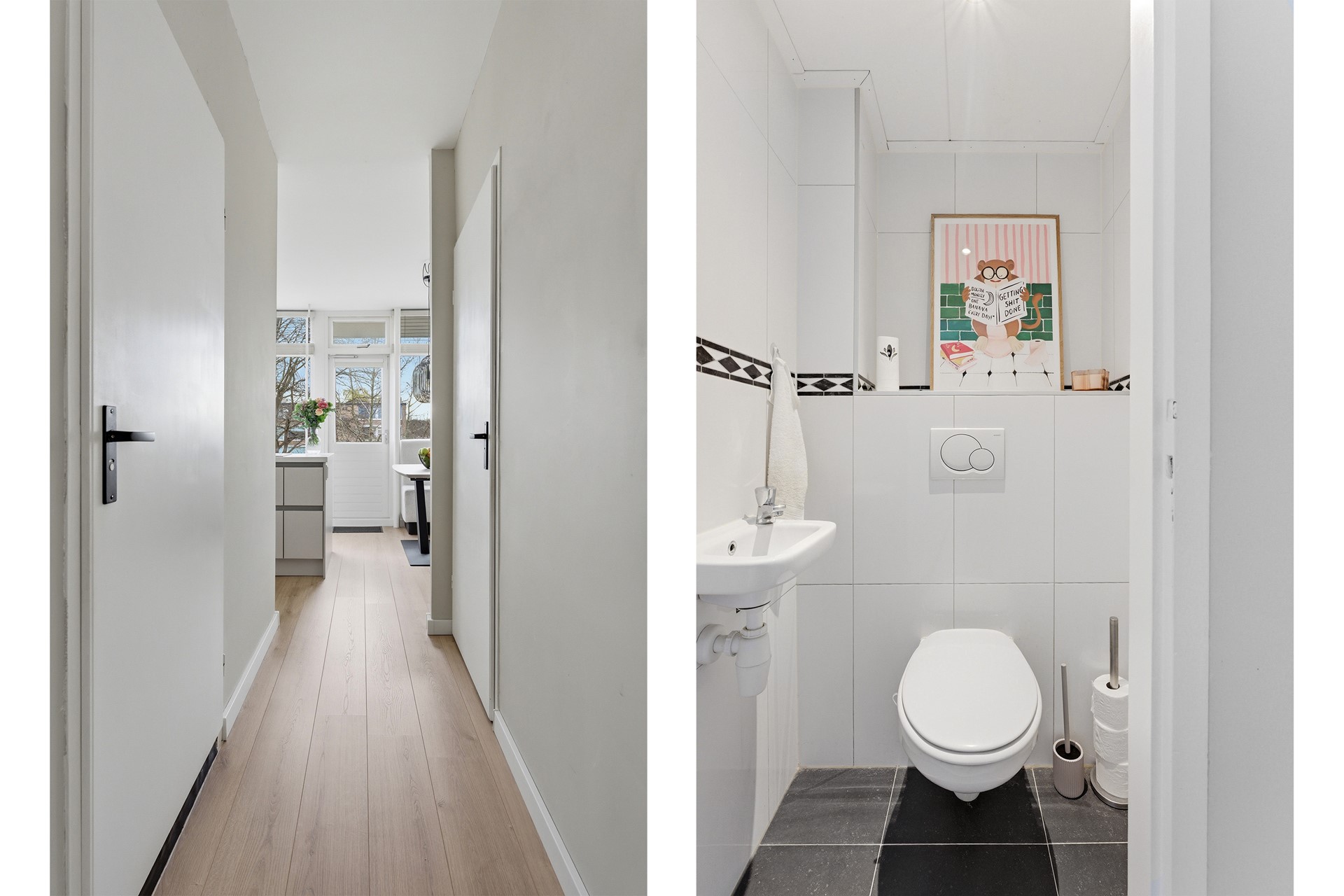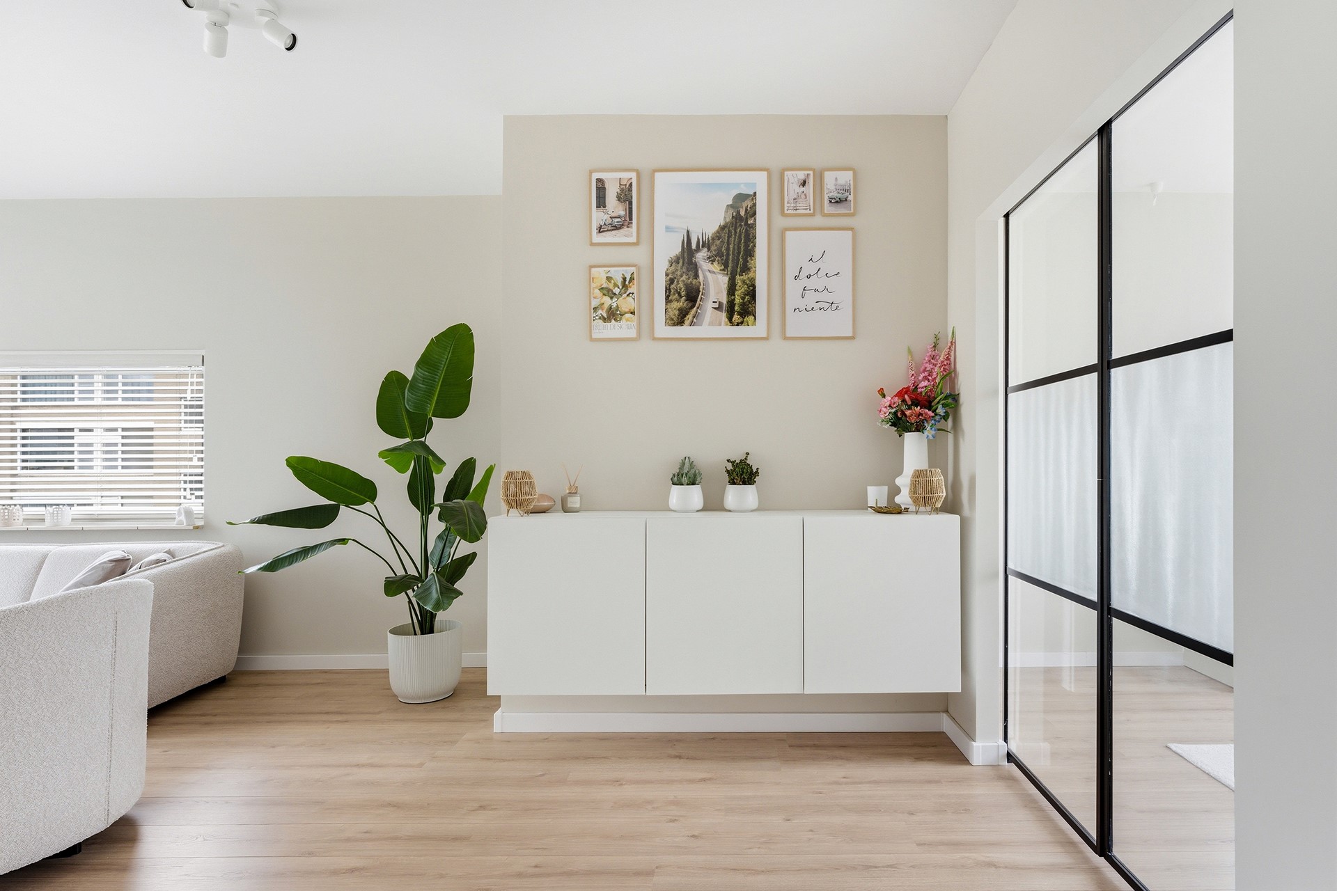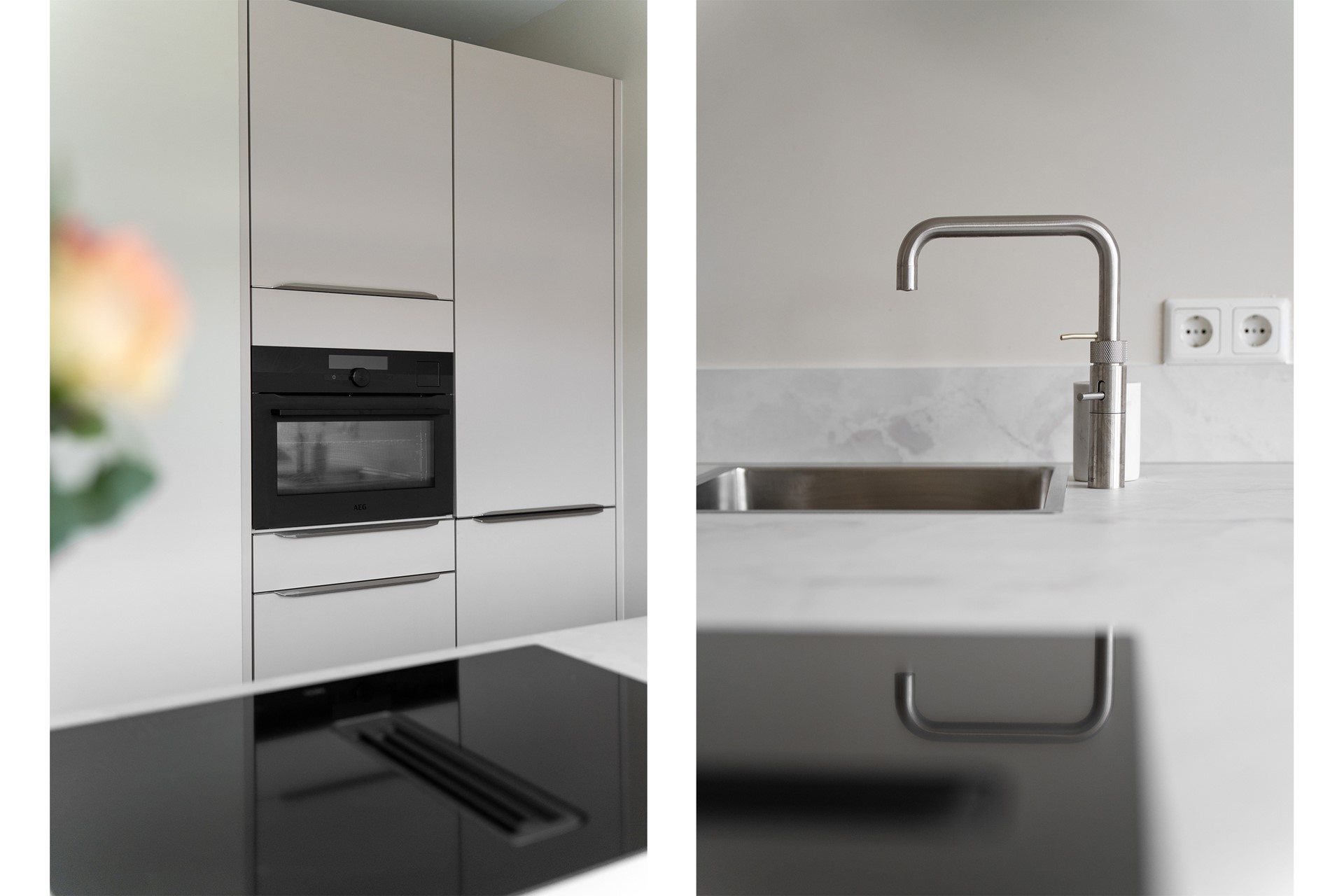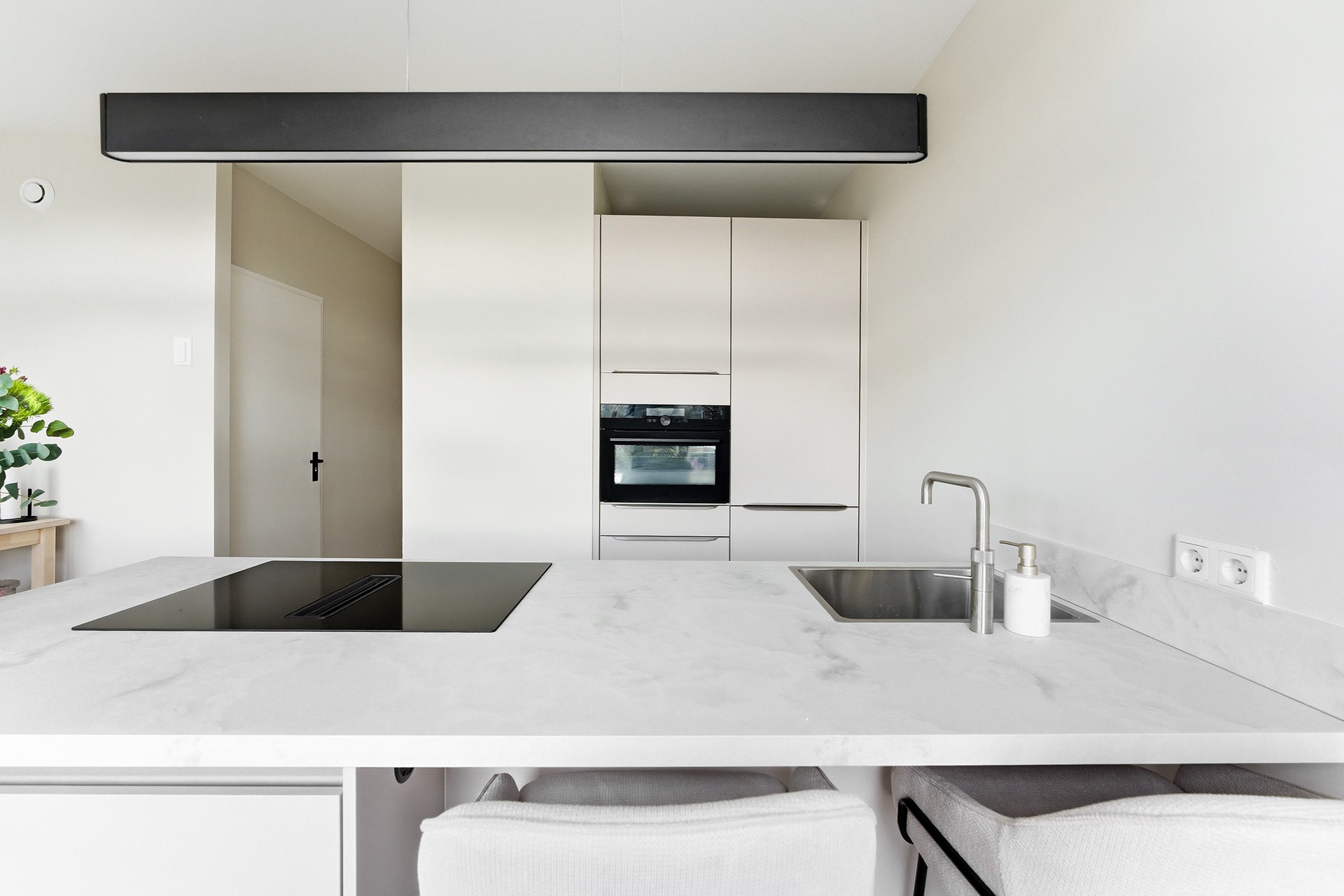 Entree van het appartement. Mooie grote ruimte met een open verbinding naar de woonkamer en toegang tot de beide slaapkamers, de badkamer, het toilet en de keuken. Prachtige woonkeuken welke in 2024 geheel nieuw is geplaatst, de keuken is voorzien van een inbouw vaatwasser, kookplaat met geïntegreerde afzuigkap, stoomoven, koelkast, vriezer en Quooker. In de keuken is een op maat gemaakte tafel en hoekbank aanwezig welke achterblijft. De badkamer is voorzien van een ruime douche en wastafelmeubel. De ruime woonkamer is voorzien van een airco die zowel voor verkoeling zorgt in de zomer als voor verwarming in de winter.