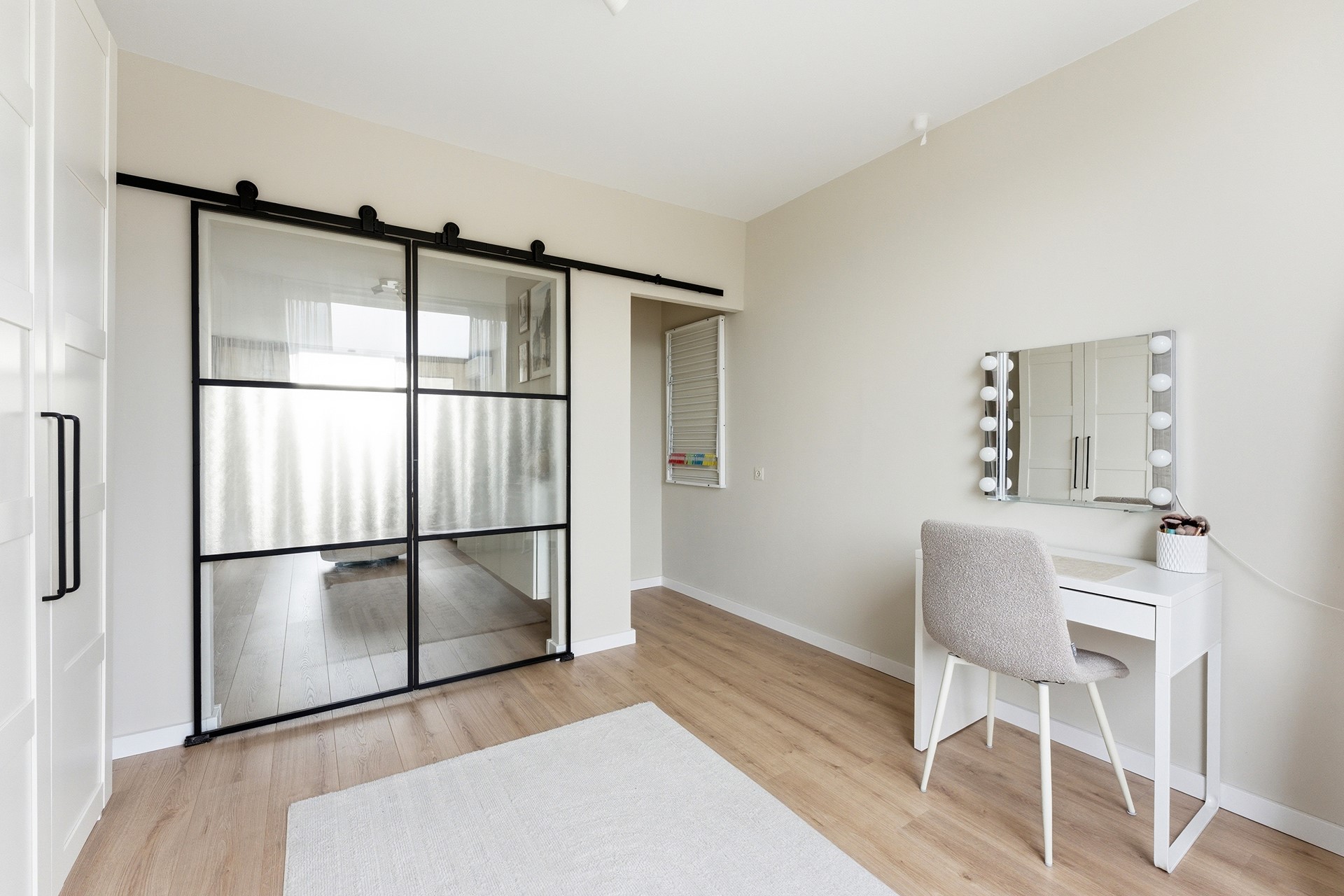 - Het zijraam is in 2024 vervangen voor een kunststof kozijn met HR++ glas