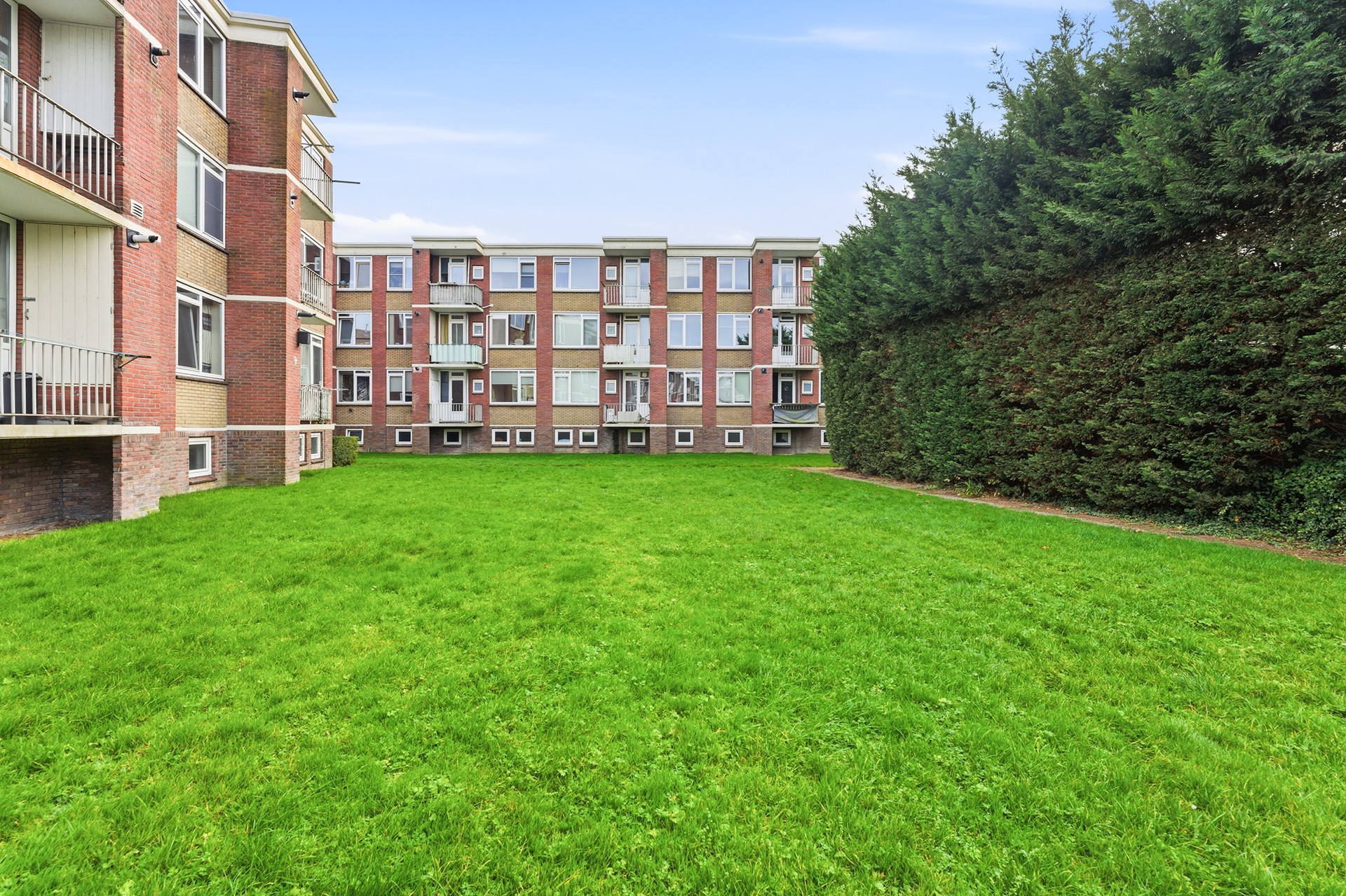 Afgesloten portiek. Toegang tot de bergingen en trap naar de woonverdiepingen.