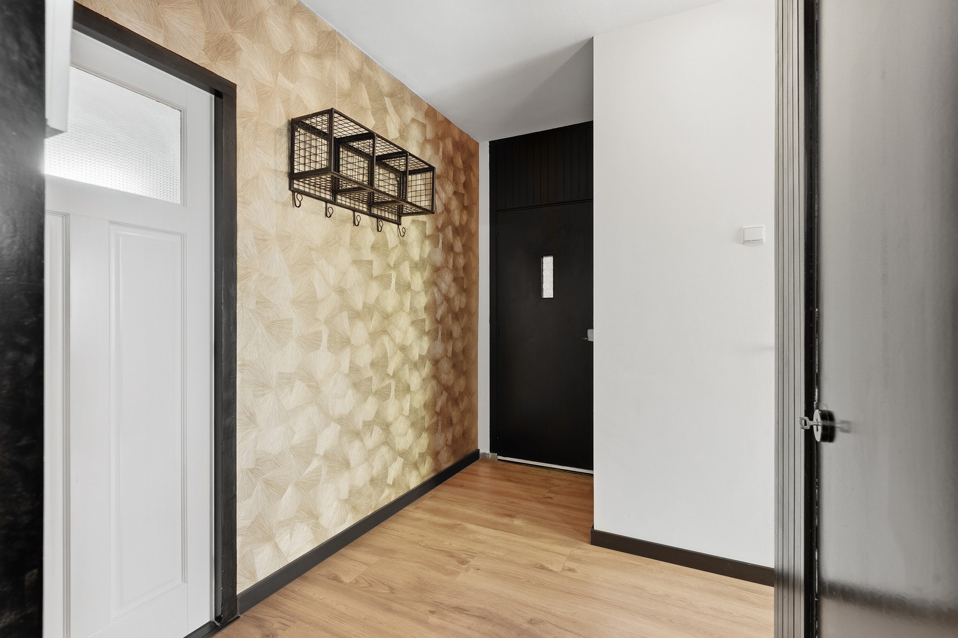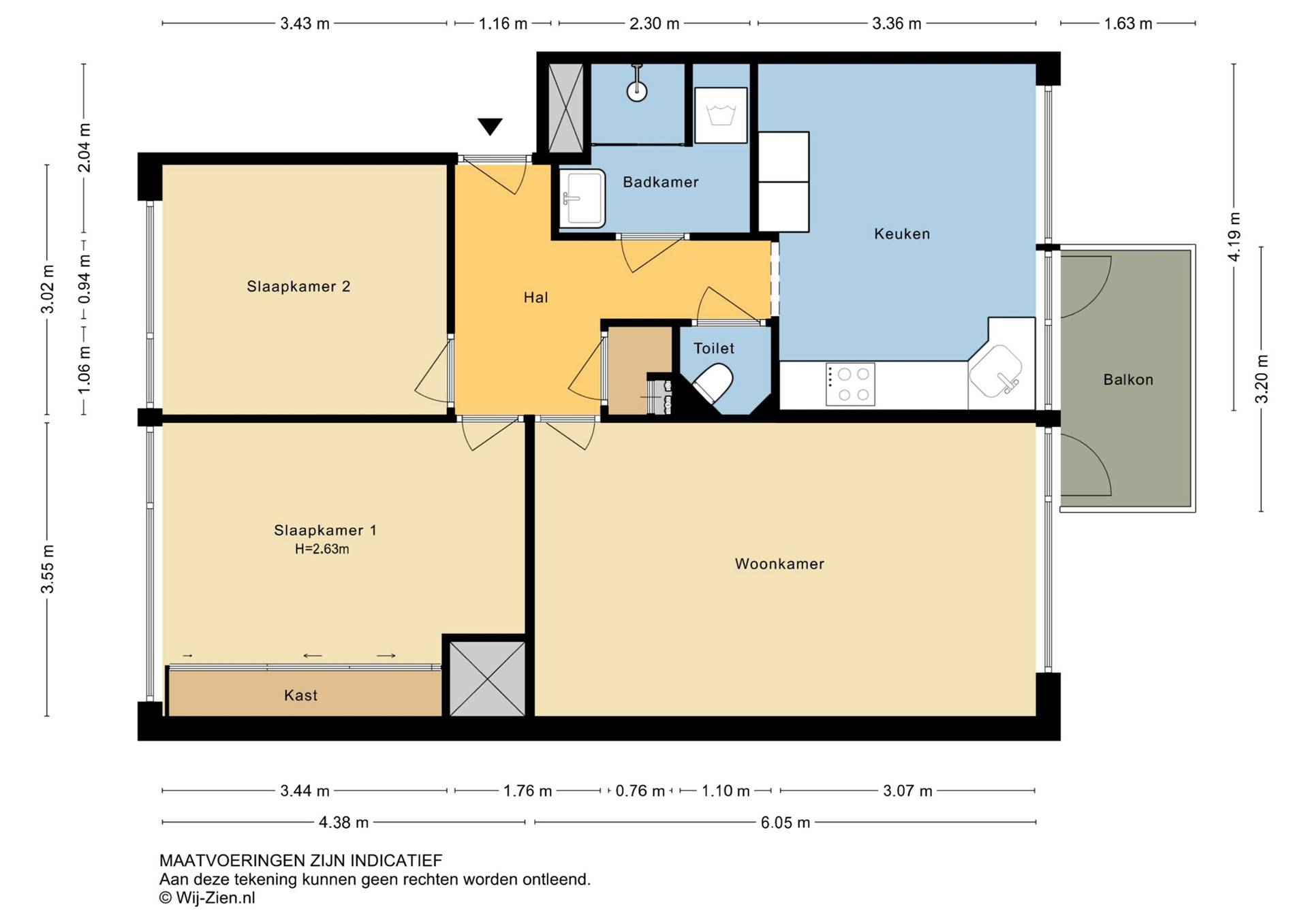 Entree van het appartement. Hal welke toegang geeft tot de woonkamer, de slaapkamers, badkamer, toilet en woonkeuken. Ruime woonkeuken aan de voorzijde, de keuken is voorzien van een inbouw vaatwasser, gasfornuis, afzuigkap, koel-vriescombinatie en combi-oven. De woonkamer is eveneens gesitueerd aan de voorzijde en heeft veel daglichtinval mede door het zijraam. Vanuit de hal is de masterbedroom, met vaste kast, bereikbaar. Beide slaapkamers zijn gesitueerd aan de achterzijde. De badkamer is voorzien van een doucheruimte, wastafelmeubel en wasmachineaansluiting. De toiletruimte is voorzien van een hangend toilet. Tot slot is er het ruime balkon op het zonnige zuidwesten, welke is te bereiken vanuit de woonkamer en de keuken.