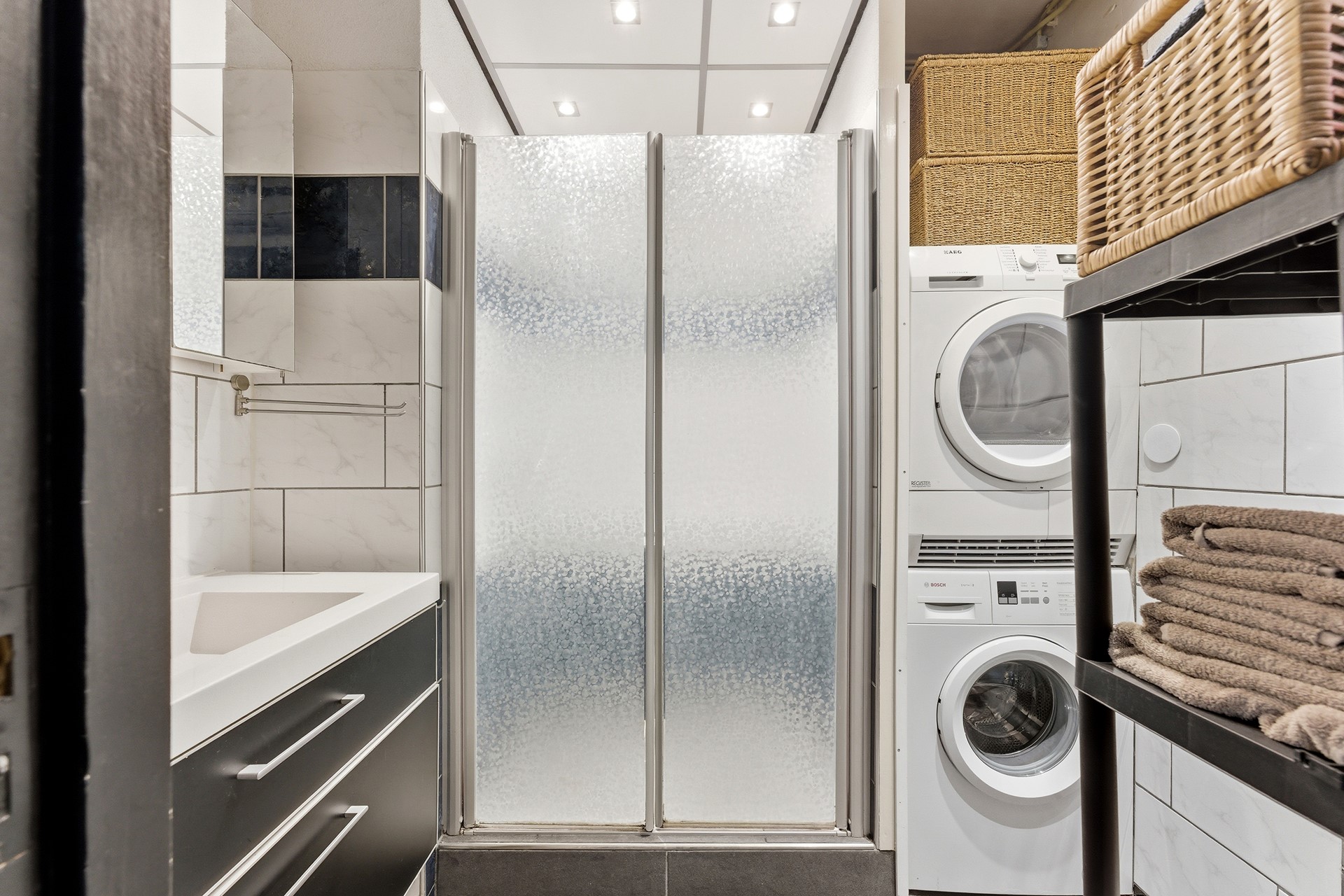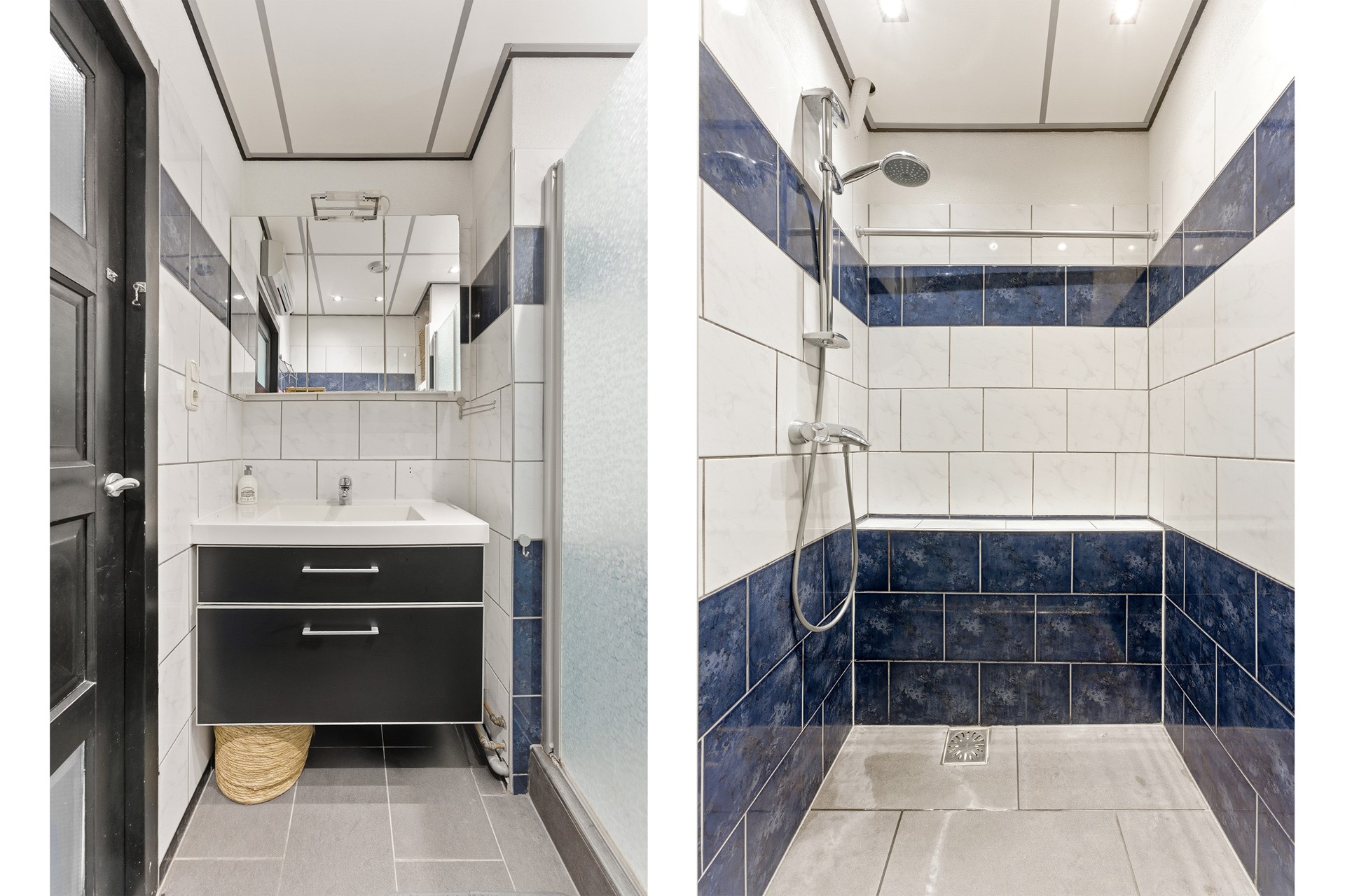 Afgesloten portiek. Toegang tot de bergingen en trap naar de woonverdiepingen.