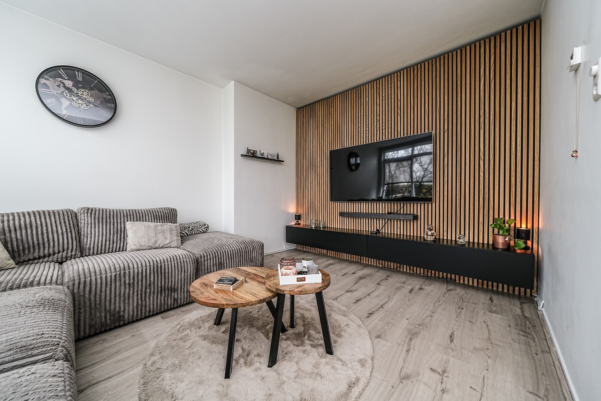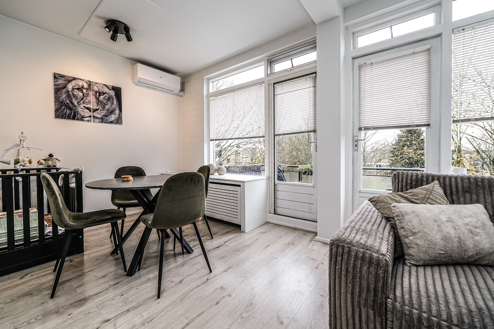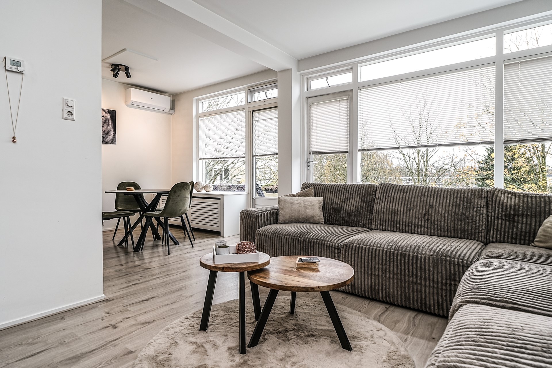 De verzorgde hal die toegang geeft tot alle vertrekken. De ruime woonkamer aan de achterzijde strekt zich uit over de volledige breedte van de woning en valt direct op door de grote ramen en directe toegang tot het balkon aan de achterzijde – een heerlijke plek voor een kop koffie in de ochtendzon.